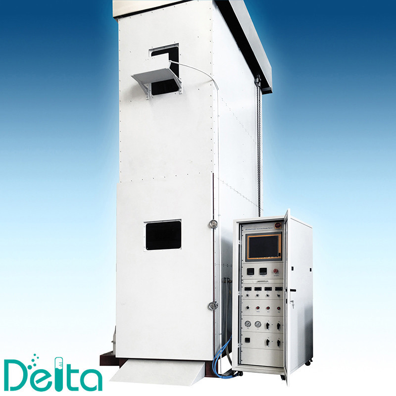 The test measures the expansion of vertical flame to the electronically or optically vertical cable or wire using the standard ignition source while supplying a certain amount of air to a chamber of a defined volume.